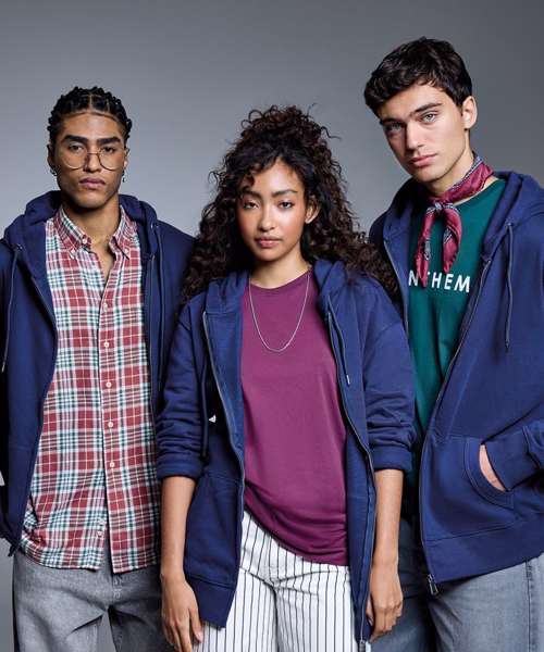 At Anthem we pride ourselves and our styles on three main values: ethically sourced, high quality fabrics and ideal for the imprint market. All these characteristic can been found in our men’s Anthem full-zip hoodie. This incredibly soft-feel style is created with organic cotton, with the addition of viscose in our marl colours. Twin-needle detailing throughout with high quality finishes and a concealed zip make this style perfect for print.