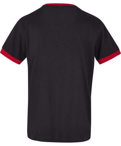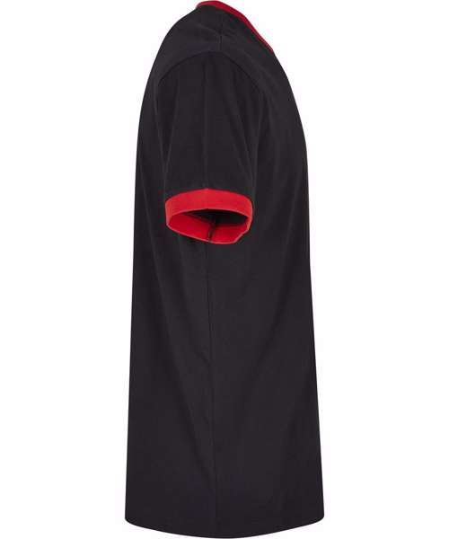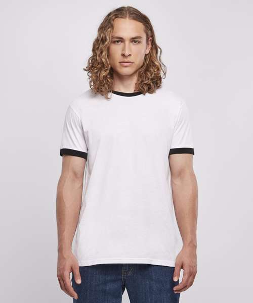 This sporty men’s ringer tee is a casual yet effective fashion classic. It offers a regular fit with traditionally-edged short sleeves and a crew neck in contrasting colour. The smooth cotton material means this shirt is ideal for further refinement, such as flock printing, screen printing or embroidery.