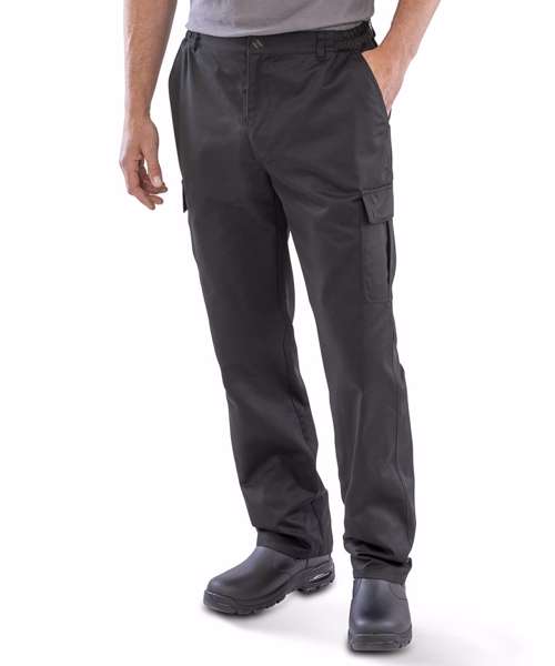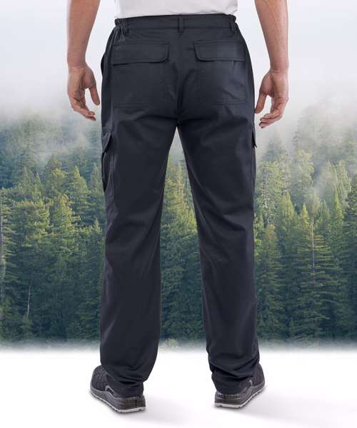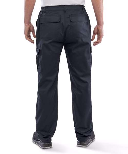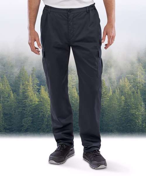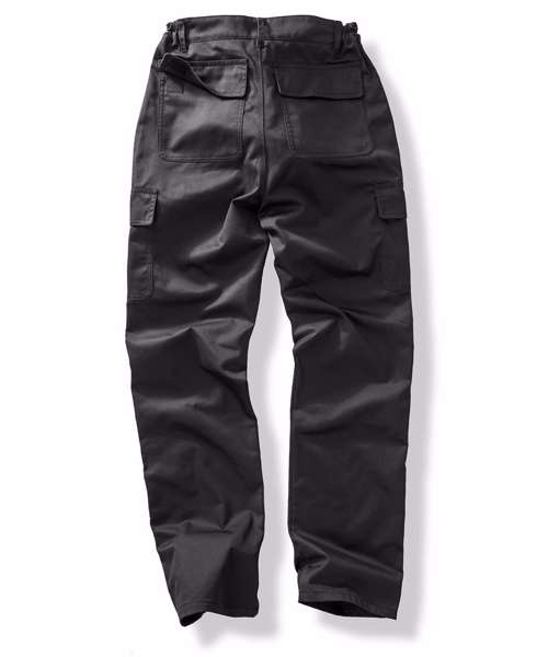 Six pockets including cargo and rear with tear release. Expansion waistband for adjustable fit and draught protection. Treble-needle stitched critical seams. Critical stress point bar tacking. Zip fly button. Belt loops.