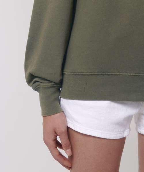 Unisex medium fit garment-dyed crew neck sweatshirt. Set-in sleeve. 1x1 rib at neck collar, sleeve hem and bottom hem. Inside single Jersey back neck tape. Self-fabric half-moon at back neck. Single-needle topstitch at neck collar. Armhole, sleeve hem and bottom hem with twin-needle topstitch. Slight shading on seams to give a washed look. Garment-dyed product: each garment may vary in appearance, colour may bleed, follow our care label. Read carefully print recommendations.