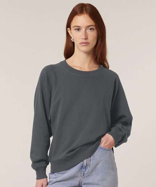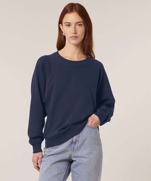Premium women’s raglan crew neck sweatshirt in 100% organic cotton. 300gsm French terry. Excellent printability. Aligns with iconic mid-light styles.