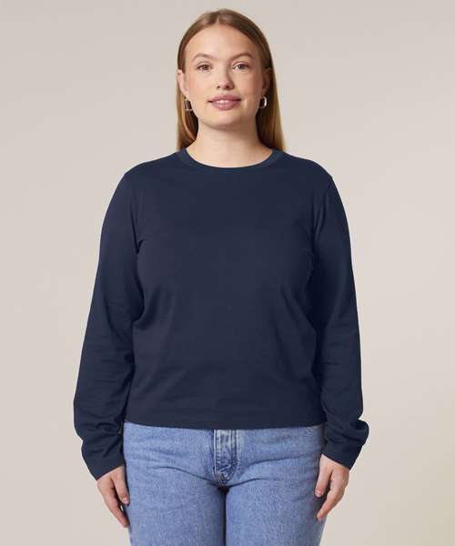 Premium women’s long-sleeve t-shirt in 100% organic cotton. Timeless style, medium fit, 180gsm. Excellent printability. Aligns with Creator 2.0 long sleeve.