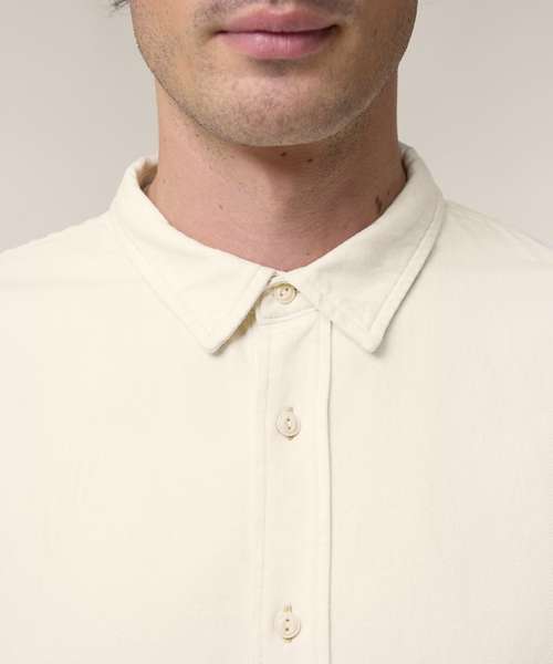 The Worker shirt. Relaxed unisex fit. Point collar with single-needle topstitches. Collar stand. Front placket with single-needle topstitches on each side. Forwarded shoulder. Back yoke. Inside yoke in self-fabric. Set-in sleeves. Sleeve placket with one button. Cuff with two buttons. Rounded cuff corners. Double pleats at cuff seam. Garment-Dyed Black Rock colour has a faded look on all seams due to garment washing. Garment-dyed product, so each garment may vary in appearance and colour may bleed – follow our care label. Read print recommendations carefully.
