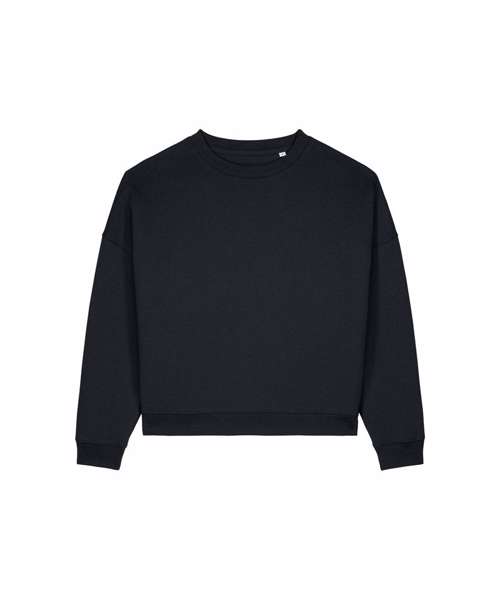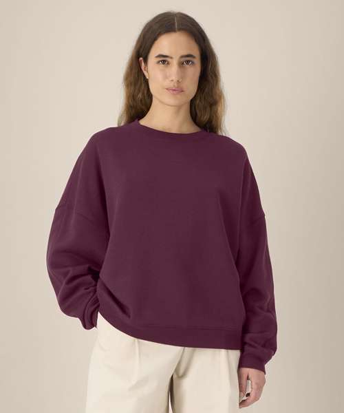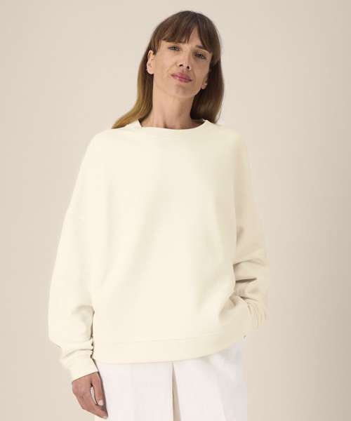 The Stella Lianna is a women’s crew neck sweatshirt crafted from a smooth organic cotton-TENCEL™ modal blend. It offers a soft hand feel, breathable comfort and a relaxed fit for extra comfort. With its natural fluidity and feminine shape, it drapes effortlessly while maintaining structure through twin-needle topstitching and forwarded side seams. The 1x1 rib at the collar, cuffs and hem adds subtle texture, while the herringbone back neck tape and self-fabric half moon complete the clean interior finish. Lightweight yet cosy, this trendy cotton modal sweatshirt is ideal for custom decoration and perfect for collections that value softness, fluidity and premium printability.