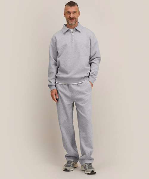 Unisex straight-leg joggers. Self-fabric, elasticated, grown-on waistband. Inside waistband flat drawcord in matching body colour. Buttonhole drawcord exit eyelets. Inserted side seam pockets. Back patch pockets. Global Organic Textile Standard (GOTS-certified, CB-GOTS-CUC-03-1006213).