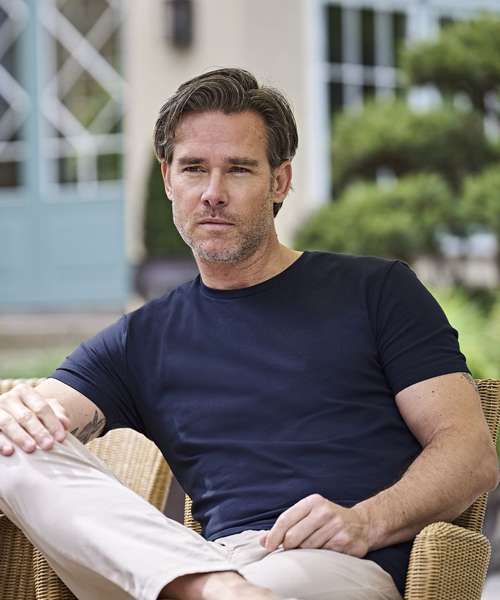 The Stretch tee is a slim-fitting stretch crew neck for men, highlighting a narrow neck rib with elastane and shoulder-to-shoulder taping for enhanced stability.