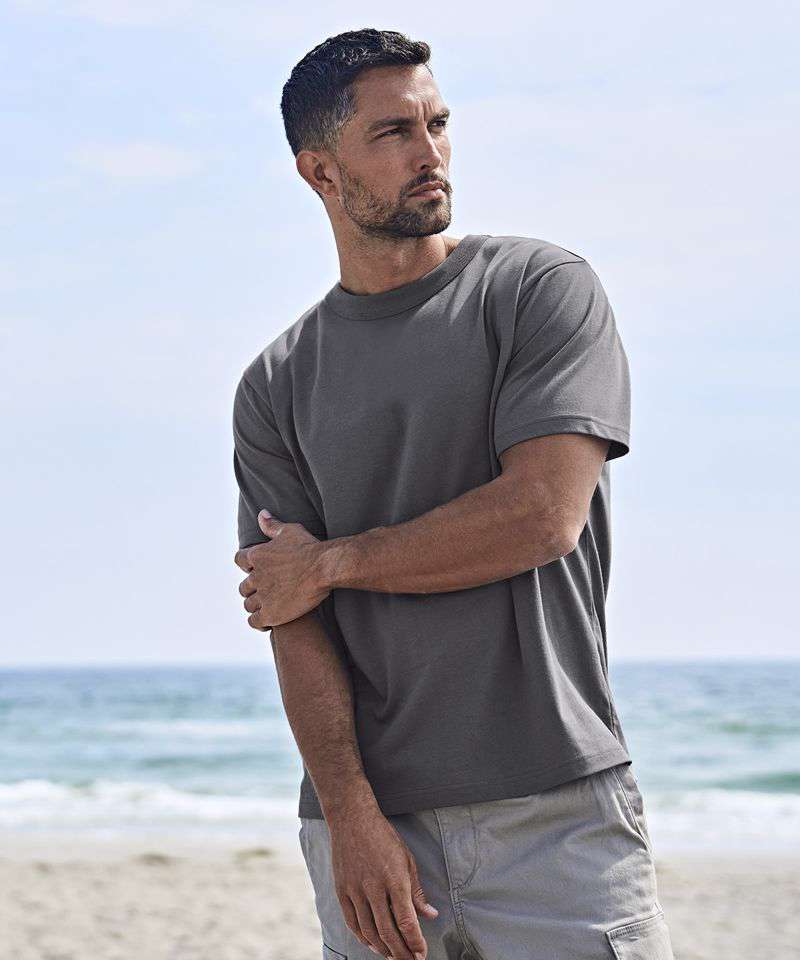 With the Urban loose fit tee, you don’t need to compromise on fashion or quality. This t-shirt has a relaxed, oversized fit with a distinctive attached 1x1 rib collar, making it easy to dress it up or down, and allows easy movement. It’s crafted from heavy cotton Jersey and has undergone an enzyme wash. The result is a robust yet soft feel which ensures long-lasting durability and comfort.