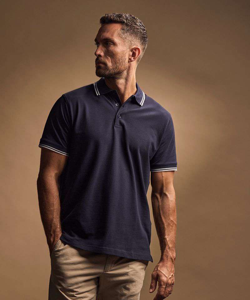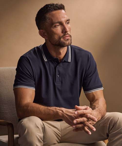 Flat knit collar with elastane. Mini piqué and tailored fit. Double pre-shrunk. Herringbone neck tape. Long-fibre cotton. Enzyme-washed. Silicone treatment. Clean finished placket. Certified organic cotton.