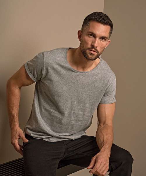 Fashion loose fit. Shoulder-to-shoulder neck tape. Double pre-shrunk. Long-fibre cotton. Enzyme-washed. Silicone treatment. Large neck opening with slim neck rib.