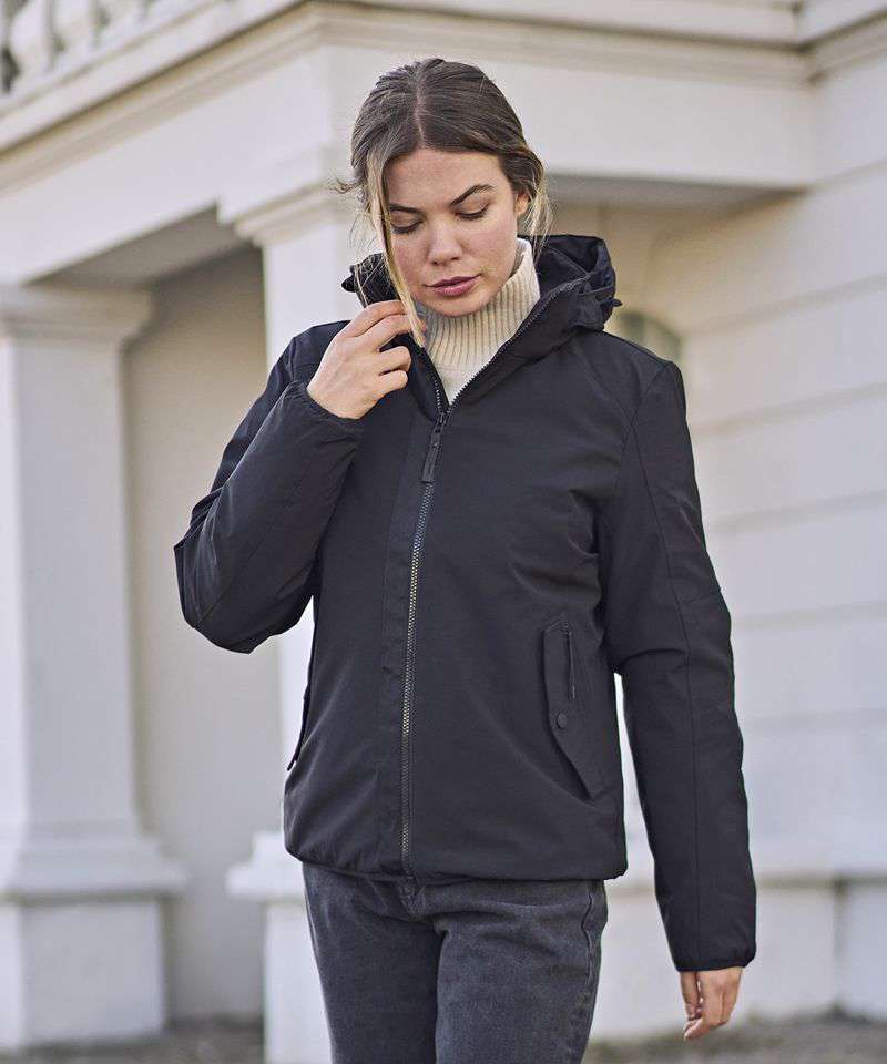 The Women’s urban adventure jacket is crafted in a two-layered performance material with a detachable hood. This premium jacket has water-repellent properties and is insulated with high-quality DuPont™ padding. The dull black trim contrast gives the jacket an urban edge, with functional features perfect for outdoor activities. The jacket has double pocket opening with a discreet zip pull and a flap with black metal snap buttons.It’s designed to provide you with excellent warmth, amazing durability and an urban outdoor look.