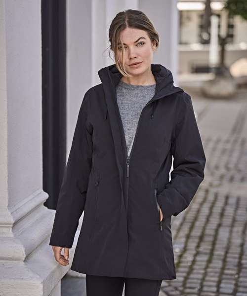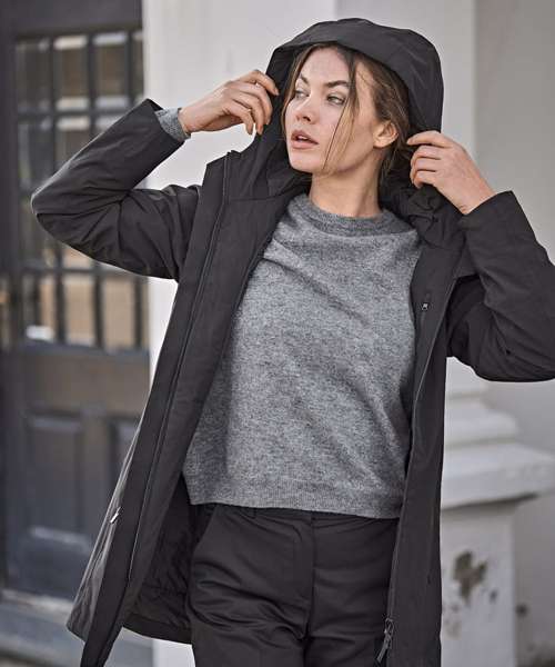 The All-weather parka has a smooth, flawless surface for the modern businesswoman, crafted in a waterproof, stretch material insulated with premium DuPont™ padding. It has a high collar and large front pockets with warm linings, as well as a hidden closure with magnetic buttons and a practical two-way front zip. The obvious first choice for your urban business ventures.