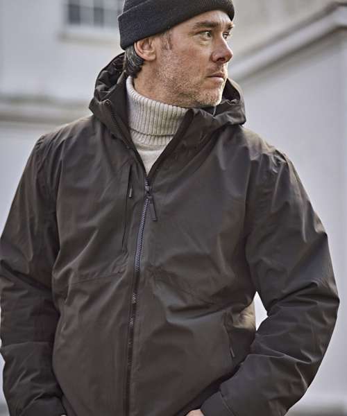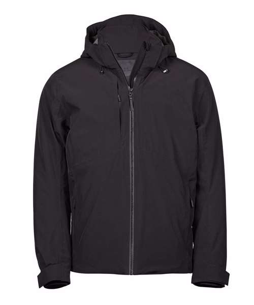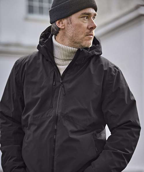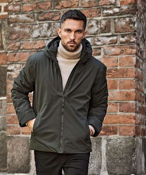 Four-way stretch fabric. Removable hood with adjustable string. Taped seams. Adjustable hem with drawstring/stopper. Two hidden front pockets with warm lining. Chest pocket and inner pocket. Sleeves with a hidden elastic storm cuff. Prepared for embroidery. Certified recycled polyester.