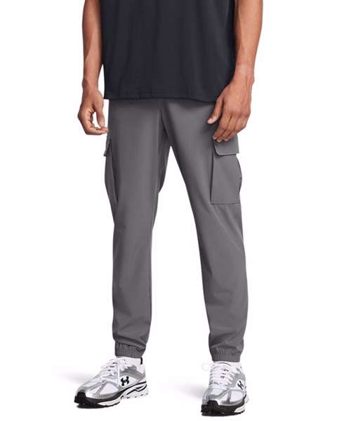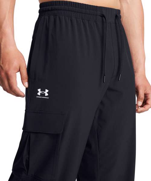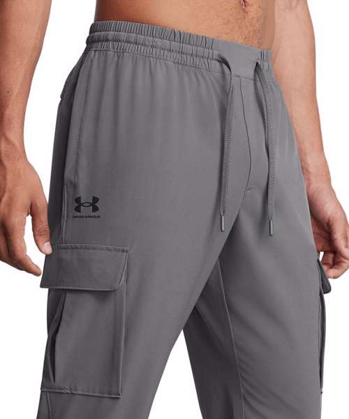 UA Storm technology repels water without sacrificing breathability. Lightweight stretch woven fabric delivers superior comfort and durability. 4-way stretch material moves in all directions. Encased elastic waistband with external drawcord. Open hand pockets, secure snap-closure back pocket and flap-closure cargo pockets.