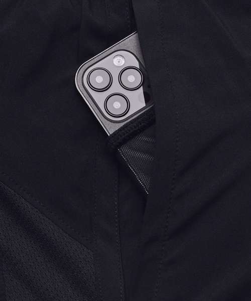 Woven fabric is lightweight, comfortable and durable. Internal mesh liner provides added coverage and support. Material wicks sweat and dries really fast. Super-breathable mesh panels provide enhanced ventilation. Soft knit waistband with internal drawcord for ultimate comfort and a secure fit. Open hand pockets with right-side internal phone pocket. Main body fabric contains at least 90% recycled polyester, excluding trims and embellishments.
