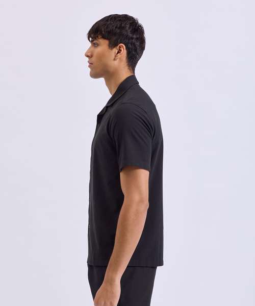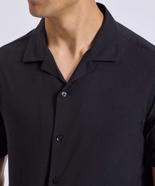 Relaxed fit shirt. Cuban collar. Button front closure. Short sleeves.