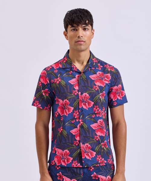 Looking to add some fun to your summer wardrobe? Look no further than Wombat's short-sleeve shirt. Perfect for vacations or just lounging in the sun, this shirt features a relaxed fit, lightweight material, a trendy Cuban collar, and easy button fastening. Wear it on its own for a breezy look, or layer it up with a classic tank top and matching Wombat swim shorts for a vibrant and coordinated outfit.