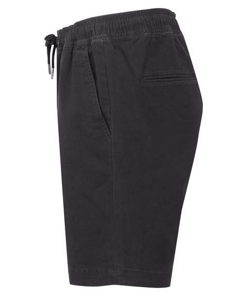 Two swing pockets and two back jet pockets with button fastening to one. Coin pocket. Elasticated waistband with drawstrings. Gunmetal eyelets and caps to drawstrings. Zip fly and button fastening to the front. Soft finish fabric. Shorts can be worn rolled up.